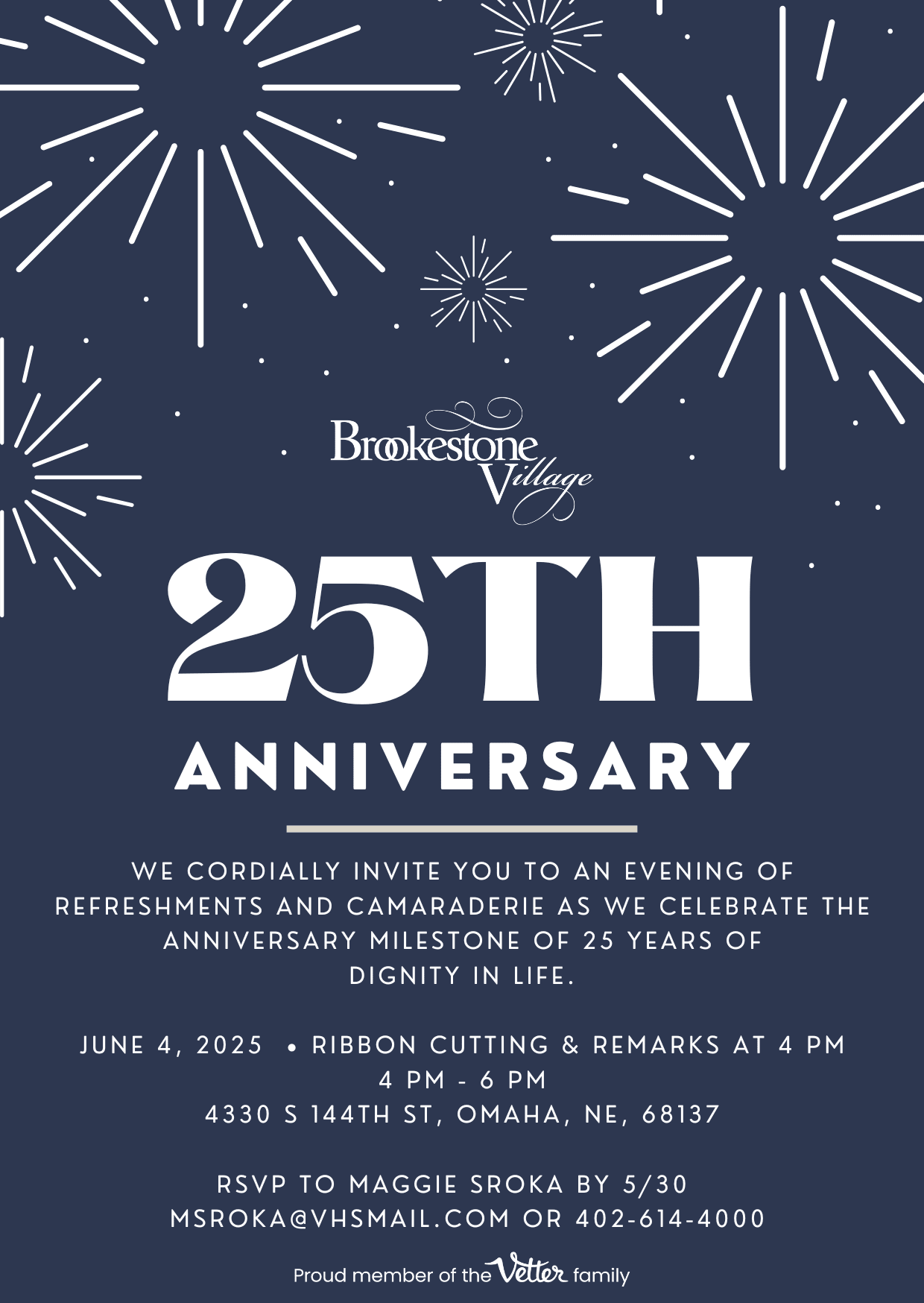 We cordially invite you to an evening of appetizers, refreshments and camaraderie as we celebrate the Anniversary milestone of 25 years of Dignity In Life. We also will have tours available, as well as a photo booth and balloon artist to complete our event.