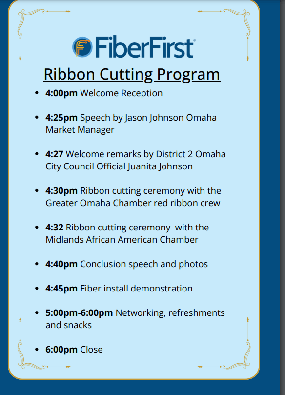 FiberFirst provides high speed internet, phone, and TV services in Omaha! We are celebrating being open almost one year in this area. Join us for snacks and refreshments.